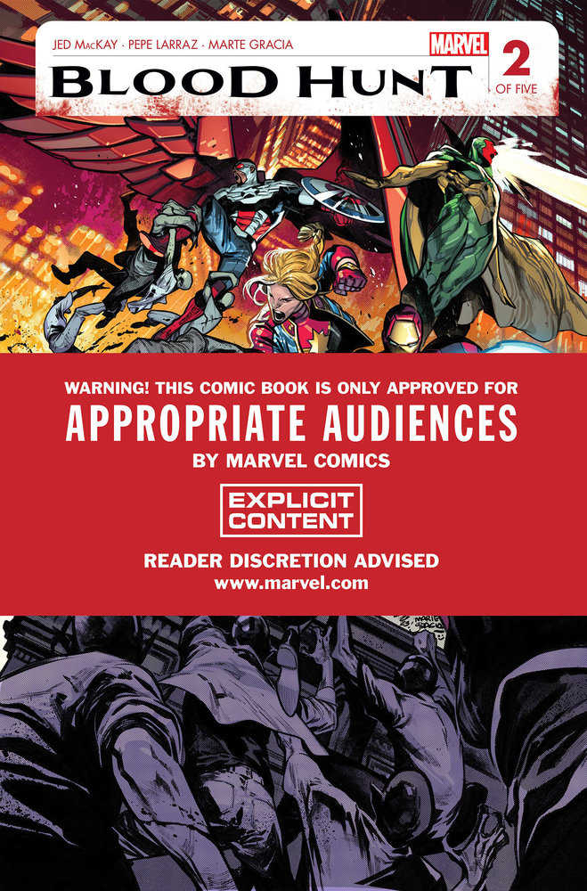 The streets run red with blood as maestro of mayhem Pepe Larraz offers new vistas of carnage in this special expanded RED BAND edition that's so much more graphic and explicit that we've had to polybag it to keep those weak of heart from experiencing its intensity! Please note: The digital codes in these BLOOD HUNT Red Band Editions will unlock the regular versions of the BLOOD HUNT series digitally.