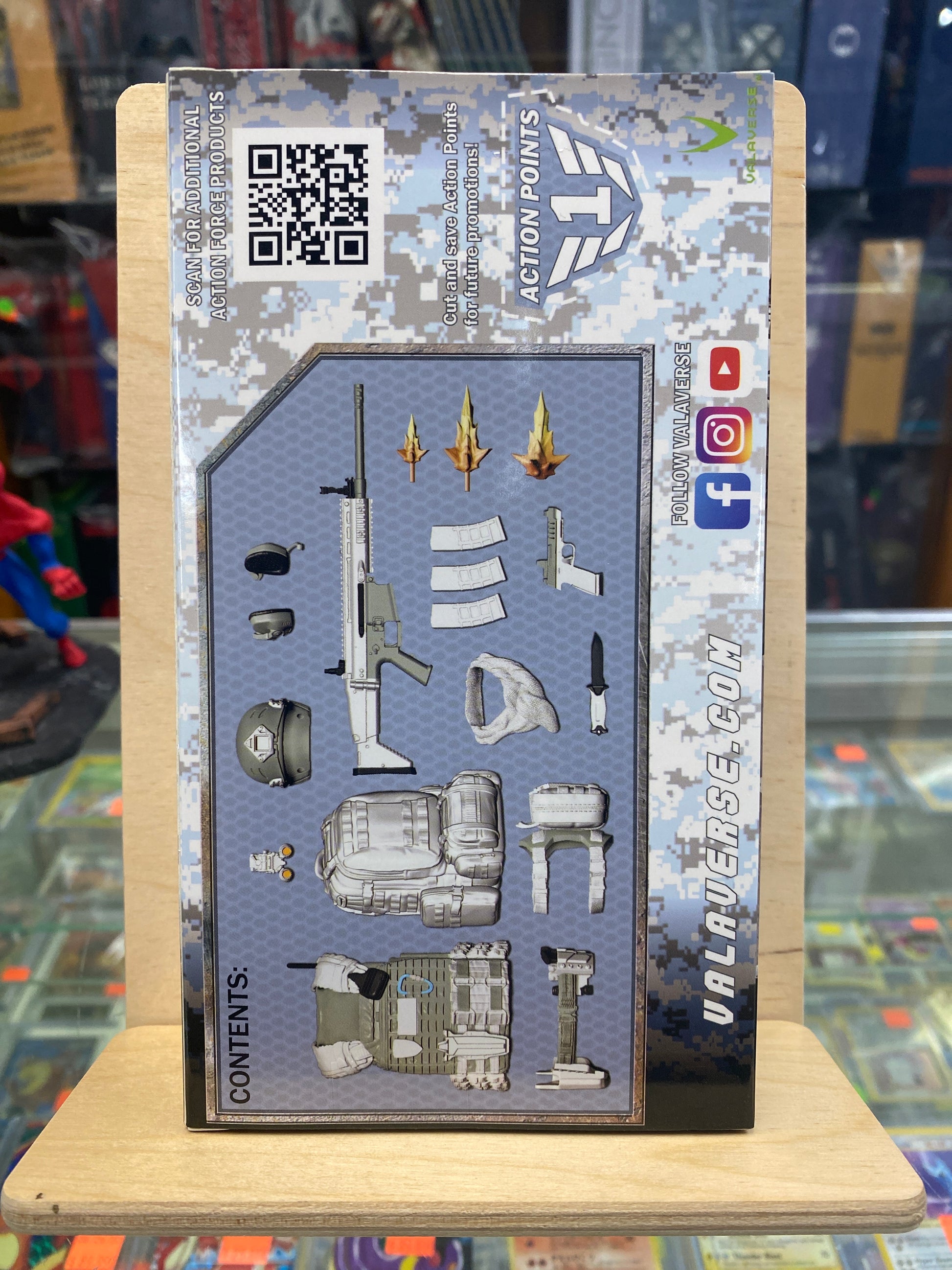 From Valaverse. 1/12 scale action figure gear! These interchangeable accessories and multiple weapons fit all male Action Force figures.