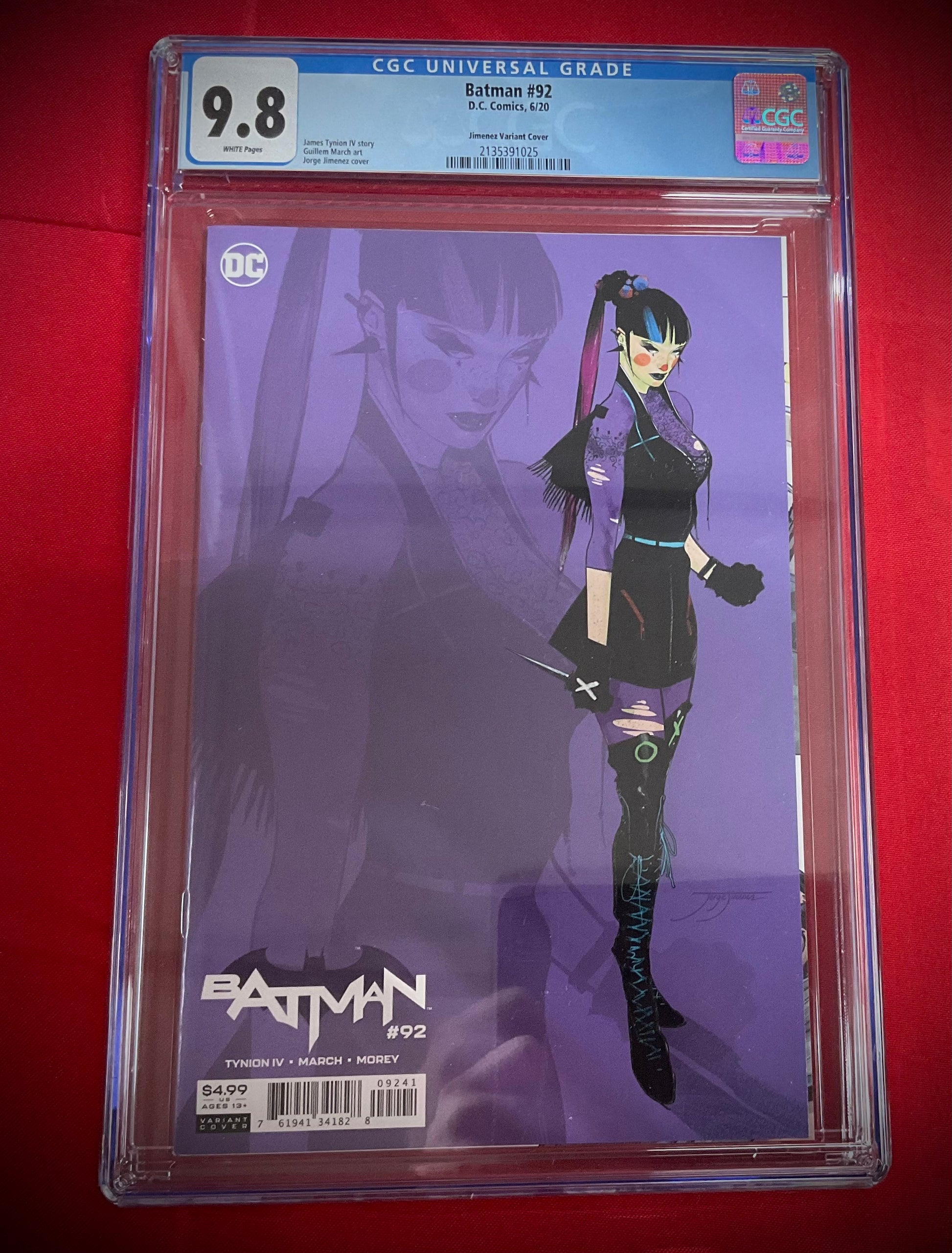Limited 1 for 25 Retailer Incentive Variant Cover. Written by James Tynion IV. Art by Guillem March. Cover by Jorge Jimenez. The greatest heist in history is underway in Gotham City, courtesy of the mysterious crimemaster known as the Designer! Batman knows what he needs to do, but in order to stop the plot, he must first escape the most ingenious death trap the Riddler has ever devised! 32 Pages, full color. Rated T+ Cover price $3.99.