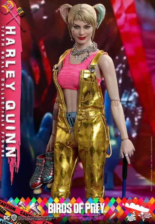 From the Birds of Prey film, Hot Toys presents the Harley Quinn collectible figure. Beautifully crafted based on the screen appearance of Margot Robbie, the movie-accurate collectible figure features a newly developed head and hair sculpture with incredible workmanship, a sophisticatedly tailored golden overall outfit as seen in the first trailer of the film, a pair of interchangeable roller shoes, Harley’s iconic mallet, a chain necklaces, a figure stand with specially designed graphic cards and character backdrop.