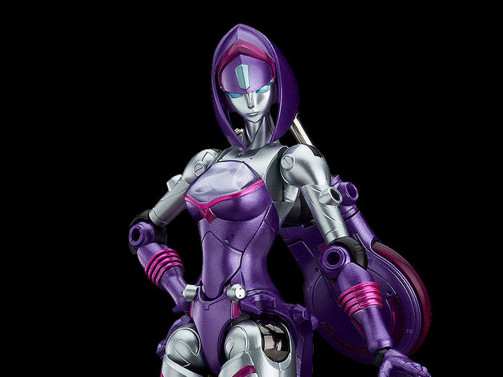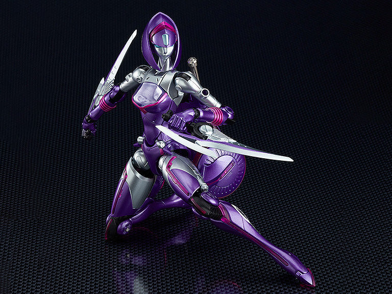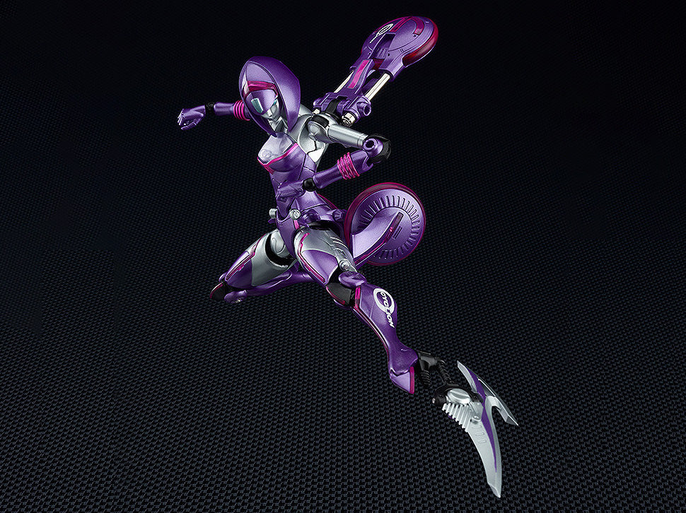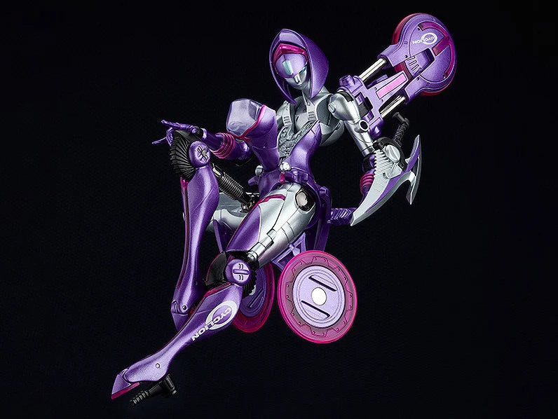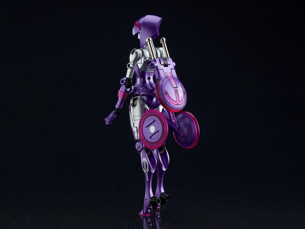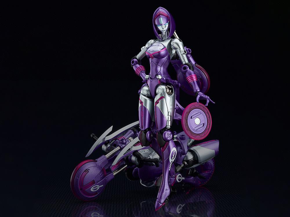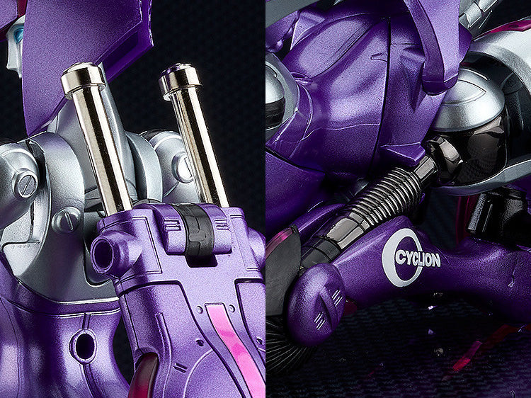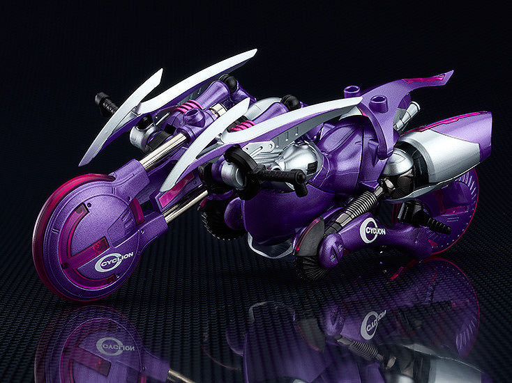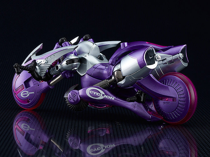 From Good Smile Company, Cyclion is a brand new transforming figure series based on Basil no Zoukei Tamashii's concept and executed by designer Tsuyoshi Nonaka! The stylish futuristic motorcycle converts into a stylish robot without the use of additional parts. The highly articulated figure features translucent parts and metal plated diecast parts that help balance the figure without a stand. A base and stand is supplied for dynamic posing.