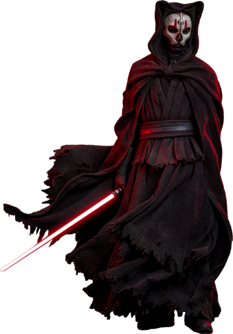 Darth Nihilus is one of the most powerful Sith Lords in the Star Wars universe. Known as the "Lord of Hunger," he is driven by an overwhelming hunger that strips him of his humanity and morality. Renowned for his ability to consume the Force energy of his victims, he uses this power to sustain his own life force. It is believed that he could consume the Force energy of an entire planet. Darth Nihilus was not born a monster; after surviving the Jedi Civil Wars, he became deeply connected to this wound, and his exposure to such overwhelming destruction fundamentally changed him. Trained in the ways of the Sith, he established the Sith Triumvirate with his fellow Dark Lords, Sion and Traya.
