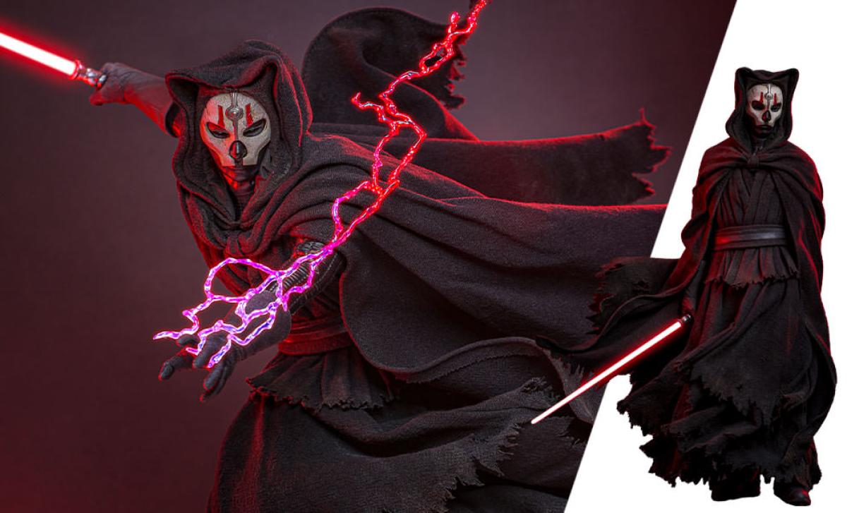The highly accurate collectible Star Wars action figure is meticulously crafted based on the appearance of Darth Nihilus, featuring a newly developed masked head sculpt, finely tailored Darth Nihilus costume, Force Lightning effect accessories, LED light-up lightsaber, and a figure stand.