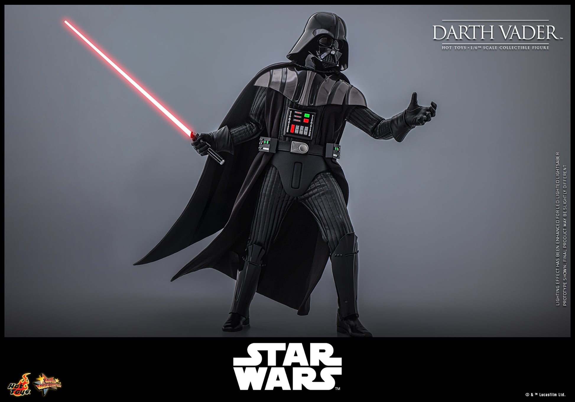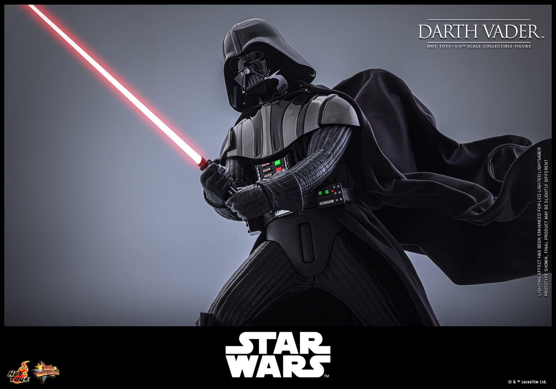The Star Wars action figure features a newly developed helmet and a highly accurate battle-damaged head sculpt, a finely tailored black suit and armor, and an LED-lighted chest panel and belt, all authentically replicated to reflect Vader's appearance in the film. With over 30 points of articulation, a selection of interchangeable hands, collectors can pose Vader in various stances that highlight his commanding presence. It also comes with lightsabers, a space station theme LED-lighted figure base and backdrop.