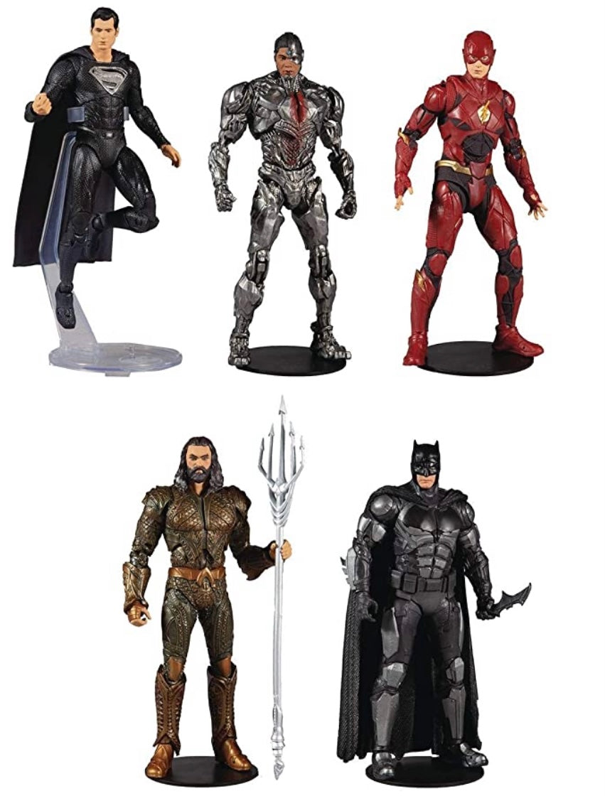 These incredibly detailed 7" scale figures are based off their looks in the the Justice League Movie. Aquaman, Cyborg, The Flash, Batman, and Superman designed with Ultra Articulation with up to 22 moving parts for full range of posing and play. Included with each is a collectable art card with movie photography on the front, and character biography on the back. Showcased in DC Justice League themed window box packaging. Collect all McFarlane Toys DC Justice League Figures!