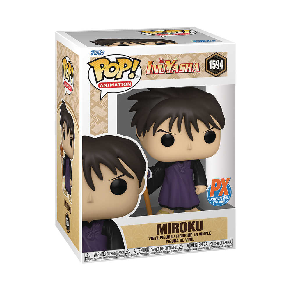 From Funko. A PREVIEWS Exclusive! Determined to banish his family's curse, Miroku teams up with InuYasha and friends to collect the fragments of the Sacred Jewel and defeat the demon Naraku! Standing at about 4" tall, the PREVIEWS Exclusive Pop! Miroku wears a determined look along with his signature Buddhist robes and holds his Shakujo staff at the ready. Join the adventure and help this crafty monk escape his windy fate by adding him to your demon-hunting team. Limited to only 20,000 pieces, the PREVIEWS Exclusive Pop! Miroku comes packaged in a window box, making him a powerful addition to any InuYasha collection!