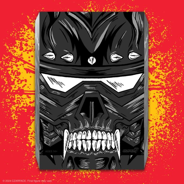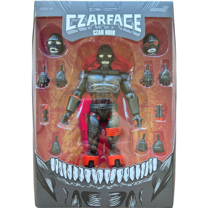 From Super7. With zero regard for human life, the sentient renegade robot Czar Noir has a reputation for sowing chaos and destruction, and lives up to the title "The Dark Czar"! Based on Czarface and MF DOOM's collab album, Super What?, this highly articulated, 7" scale Czarface ULTIMATES! Czar Noir figure looks like malevolence incarnate with its jet-black color scheme with metallic, blood-red details. Featuring intricate sculpt and premium paint detailing, this figure also comes with multiple interchangeable heads and hands, interchangeable forearm missiles, and a removable soft goods cape. Czar Noir is currently at large- you can put an end to his rampage by adding this made-to-order ULTIMATES! figure to your collection today!