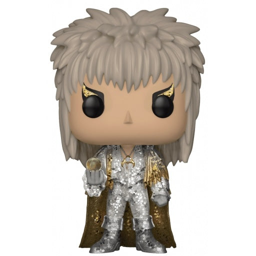 Jareth with this owl-cloak festooned David Bowie POP! The cloak itself and his eyes have gold glitter, and the rest of his outfit has silver glitter spangled on it. And where can you get glitter Jareth? Here!