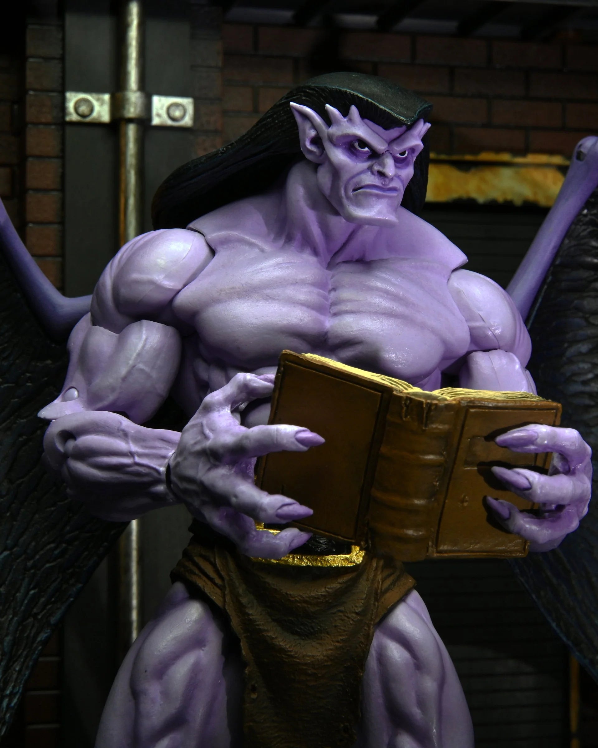 From NECA. The time of the Gargoyles has come again! Arguably the best gothic cartoon of the 1990s, Gargoyles followed an ancient clan of gargoyles transported to modern-day Manhattan when their Scottish castle is relocated. Leader Goliath joins the Ultimate line with an appropriately large 8" action figure, with a wingspan of 16 inches! The figure features full articulation, including on wings and tail, and comes with plenty of accessories: wings, pepper, book, and interchangeable heads and hands. Comes in display-friendly window box packaging with opening flap.
