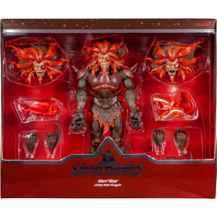From Super7. The galactic mob boss Mon*Star might actually be scarier without his enhanced robotic armor, leaving no doubt he's a fearsome foe for the SilverHawks and the inhabitants of the Limbo Galaxy! This made-to-order 7" scale fully articulated SilverHawks ULTIMATES! figure of Mon*Star features premium detail and comes with interchangeable heads & hands, and a variety of other accessories, including a pair of Sky Shadow figures. Mon*Star has escaped the maximum security prison Penal Planet 10 twice, so don't let the chance to add Mon*Star to your collection escape your grasp! Snag this Mon*Star ULTIMATES! figure before it disappears!