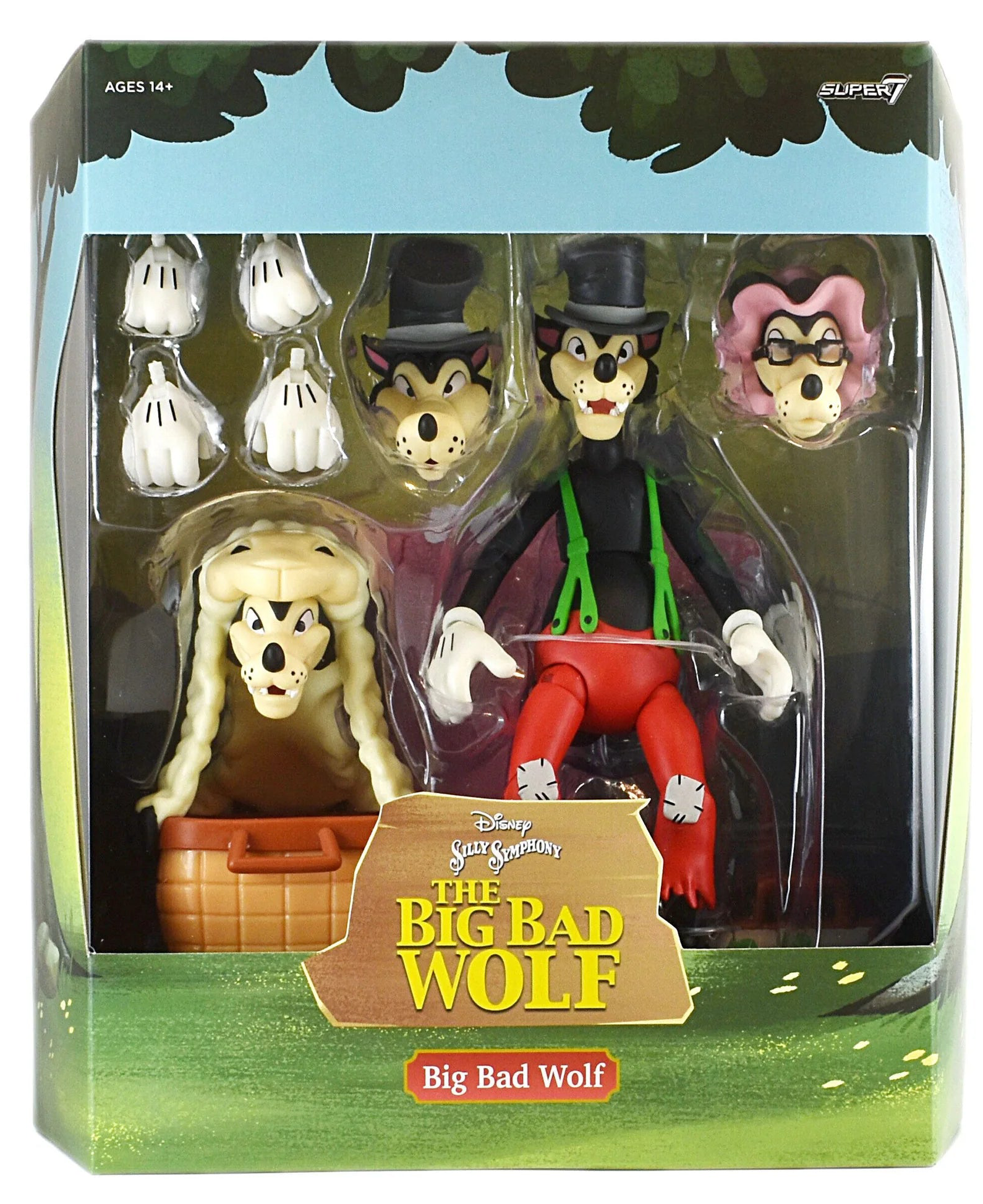 From Super7. Your eyes do not deceive you! Those eyes, nose, and mouth are WAY too big to be Grandma's. This 7" scale, highly articulated, intricately designed ULTIMATES! figure of The Big Bad Wolf from Disney Silly Symphony's The Big Bad Wolf includes multiple interchangeable heads & hands as well as his Grandma disguise. It doesn't matter if your house is made of straw, sticks, bricks, or whatever, this made-to-order Disney ULTIMATES! figure of The Big Bad Wolf will be right at home in your collection!