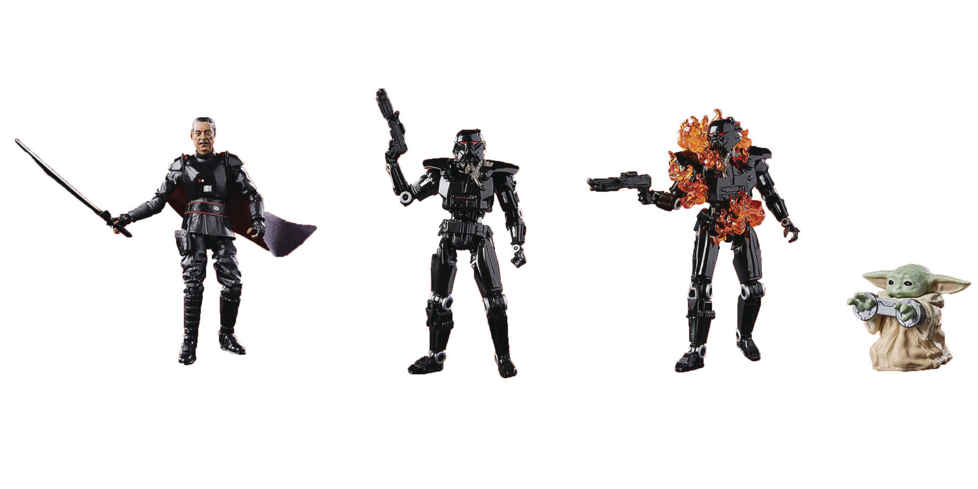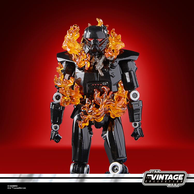From Big Bad Toy Store. The Mandalorian leads a crew on a rescue mission to Moff Gideon's ship where a garrison of dark troopers - the advanced droids that captured Grogu - are waiting. Celebrate the legacy of Star Wars, the action-and-adventure-packed space saga from a galaxy far, far away, with premium 3.75"-scale figures and vehicles from Star Wars: The Vintage Collection. Figures feature premium detail and design across product and packaging inspired by the original line, as well as the entertainment-inspired collector grade deco that fans have come to know and love. The Mandalorian figure comes with flame thrower and whistling bird effects, spear and blaster. Dark Trooper comes with blaster & fire effects. Moff Gideon comes with Dark Saber & blaster. Grogu comes with handcuffs.