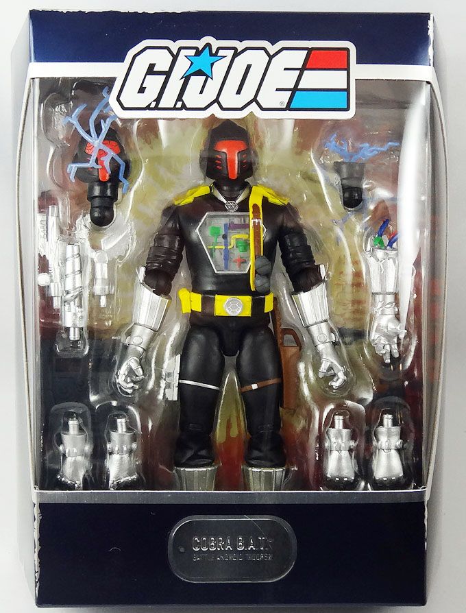 From Super7. The conflict between G.I. Joe and Cobra for the fate of the world continues with Super7's G.I. Joe ULIMATES! figures! G.I. Joe's Field Commander, Sergeant Conrad S. Hauser - better known as Duke - knows multiple languages, but the one he may be most fluent in is the language of kicking Cobra butt! Snake Eyes may not be able to speak, but his G.I. Joe ULTIMATES! figure pretty much speaks for itself! They may lack the over-the-top dramatic flourishes exuded by many of Cobra's notable characters, but Cobra Battle Android Troopers (B.A.T.) more than make up for that in their ability to unleash pure battlefield carnage and mayhem! These made-to-order 7" scale fully articulated G.I. Joe ULTIMATES! figures come with interchangeable heads and hands, and a variety of accessories, including battle damaged pieces, weapon attachments, multiple guns and more!