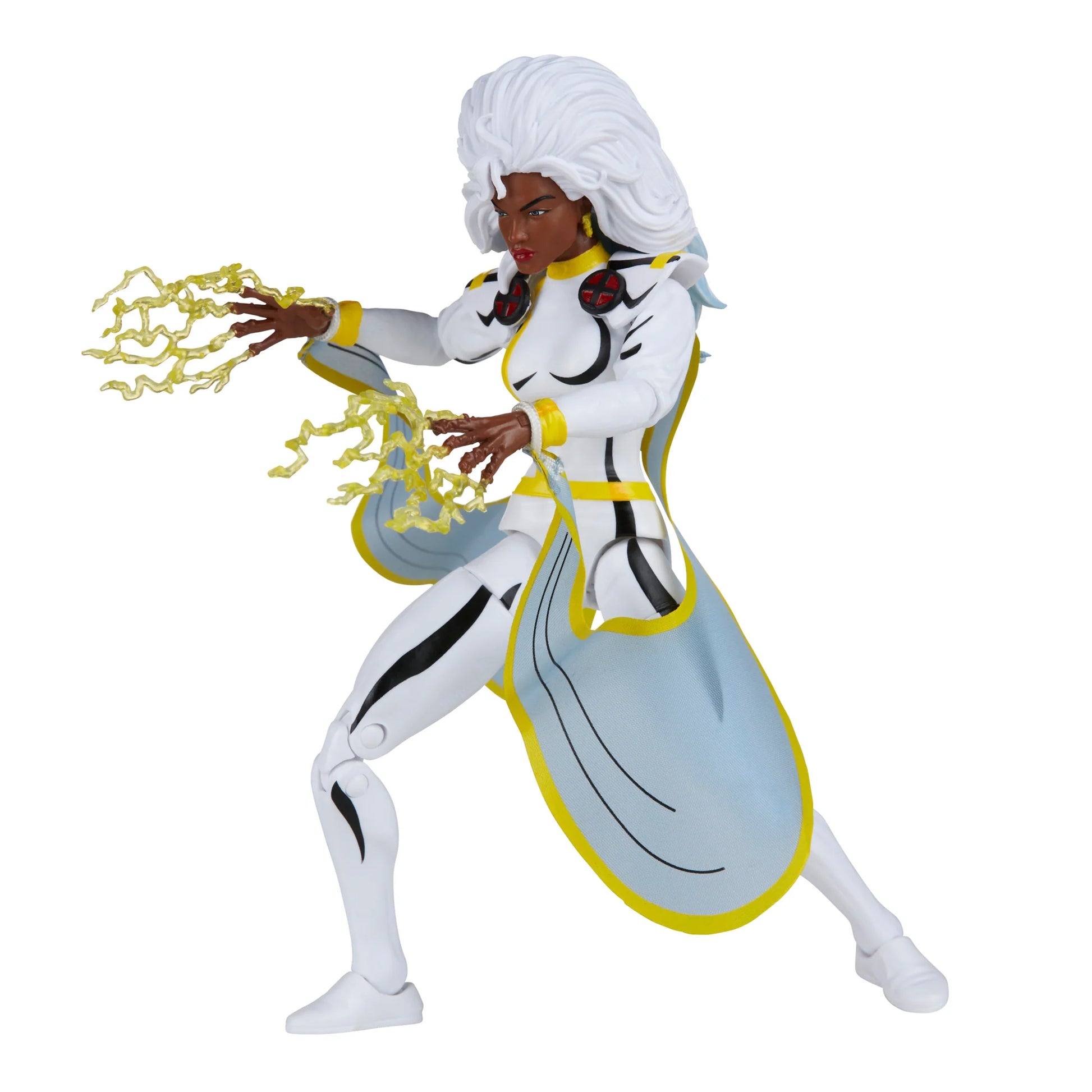 From Hasbro Toy Group. With her weather manipulation powers Storm can summon lightning across the sky, or gentle rain over a parched land. The 6-inch scale 90s animated Storm figure features unique sculpting and deco to recreate the X-Woman's classic white costume and regal animated presence! The Marvel Legends 90s animation-inspired Storm figure comes with alternate hands wreathed in crackling electrical energy FX and comes in premium collectible packaging inspired by the classic 90s X-Men: The Animated Series video cassette box covers!