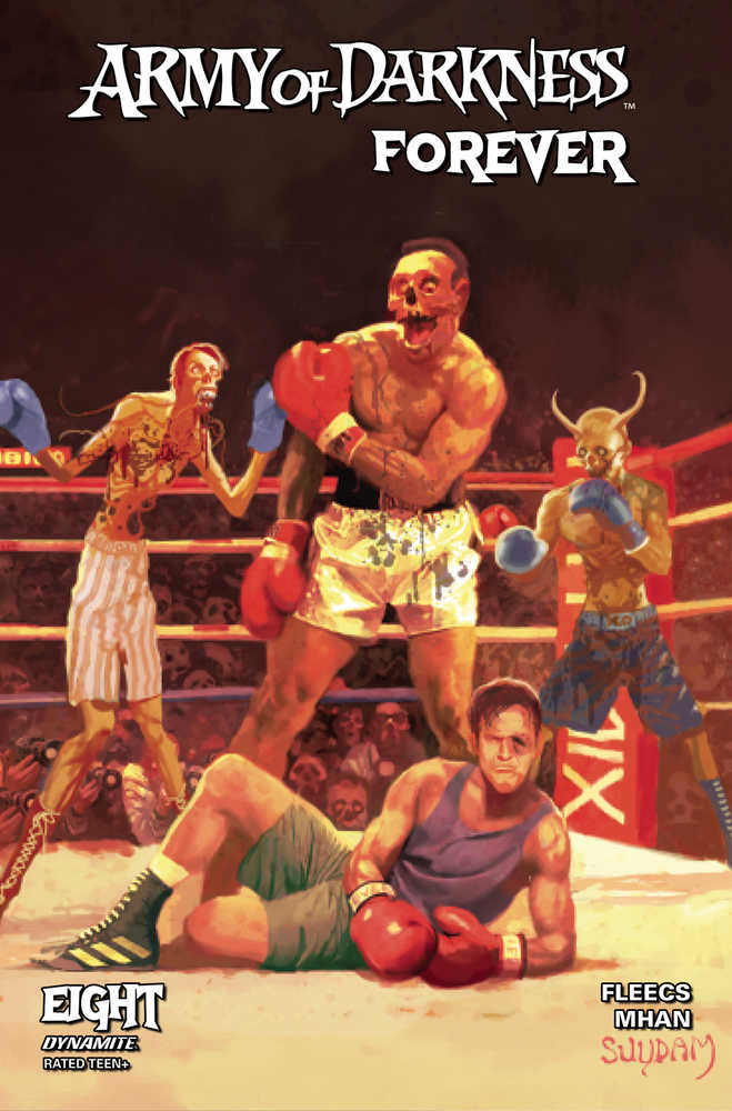 In this issue: Ash and the Necronomicon Baby join forces and set out to unite the Necronomicons from the past, present, and future in a desperate bid to straighten out the timeline once and for all - and maybe, just maybe... save the world! Answering the age-old questions posed by the ending of Army of Darkness: The Director's Cut, writer TONY FLEECS and artist POP MHAN prepare to rewrite history with Army of Darkness Forever #8 - supported by a quartet of incredible covers by FLEECS, BJORN BARENDS, ARTHUR SUYDAM, and CHRIS BURNHAM!