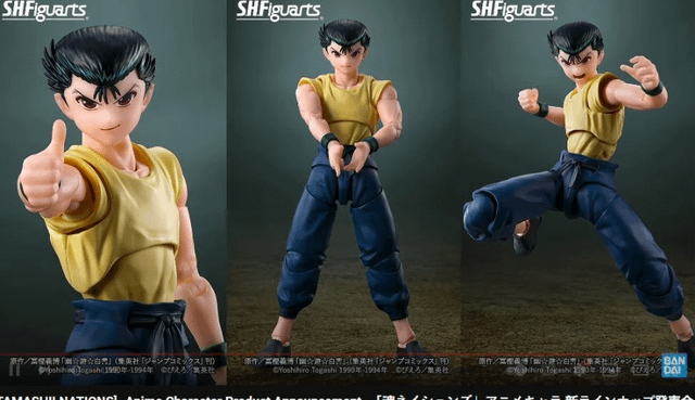 From Tamashii Nations. From "Yu Yu Hakusho", "Yusuke Urameshi" joins S.H.Figuarts in his costume during the Dark Martial Arts Arc! Four types of interchangeable facial parts are included, and by replacing them with hair parts with the hair down, a total of 10 different expressions can be reproduced. In addition, this luxurious set includes two types of Reigun effect parts, a dedicated pedestal for the Reigun effect parts (firing), and Pooh. [Set Contents] Main body, Interchangeable hands (3 left, 4 right), 4 interchangeable face parts, Interchangeable head, Pooh, Spirit ball effect parts (charge), Spirit bullet effect parts (fire), A set of dedicated pedestals for the Reigan effect parts (firing)
