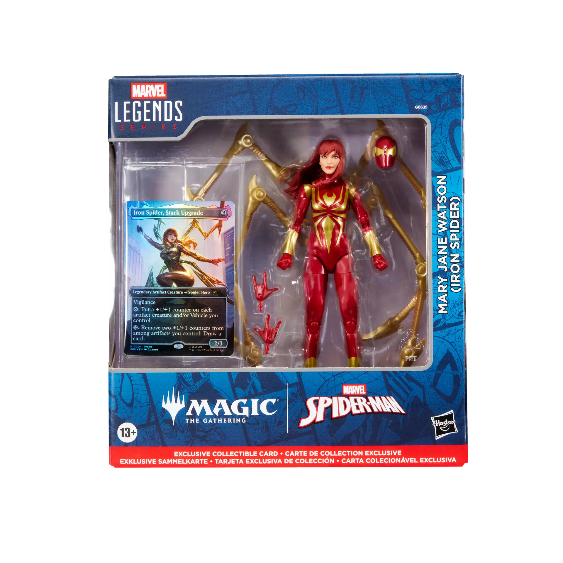 To help Iron Man and Spider-Man defeat Augustus Roman, a tech mogul who has been siphoning the abilities of super criminals in his alter ego Regent, Mary Jane Watson dons the Iron Spider armor bringing the battle to him. A little bit of Magic has invaded the Marvel Universe and Hasbro Marvel Legends Series. This collaboration pairs the fantastic action figures of fan-favorite Marvel Comic Universe characters with an exclusive playable foil card from Magic: The Gathering | Marvel's Spider-Man which is slinging cards from across the Spider-Man universe into your favorite decks. Ages 4 and up.