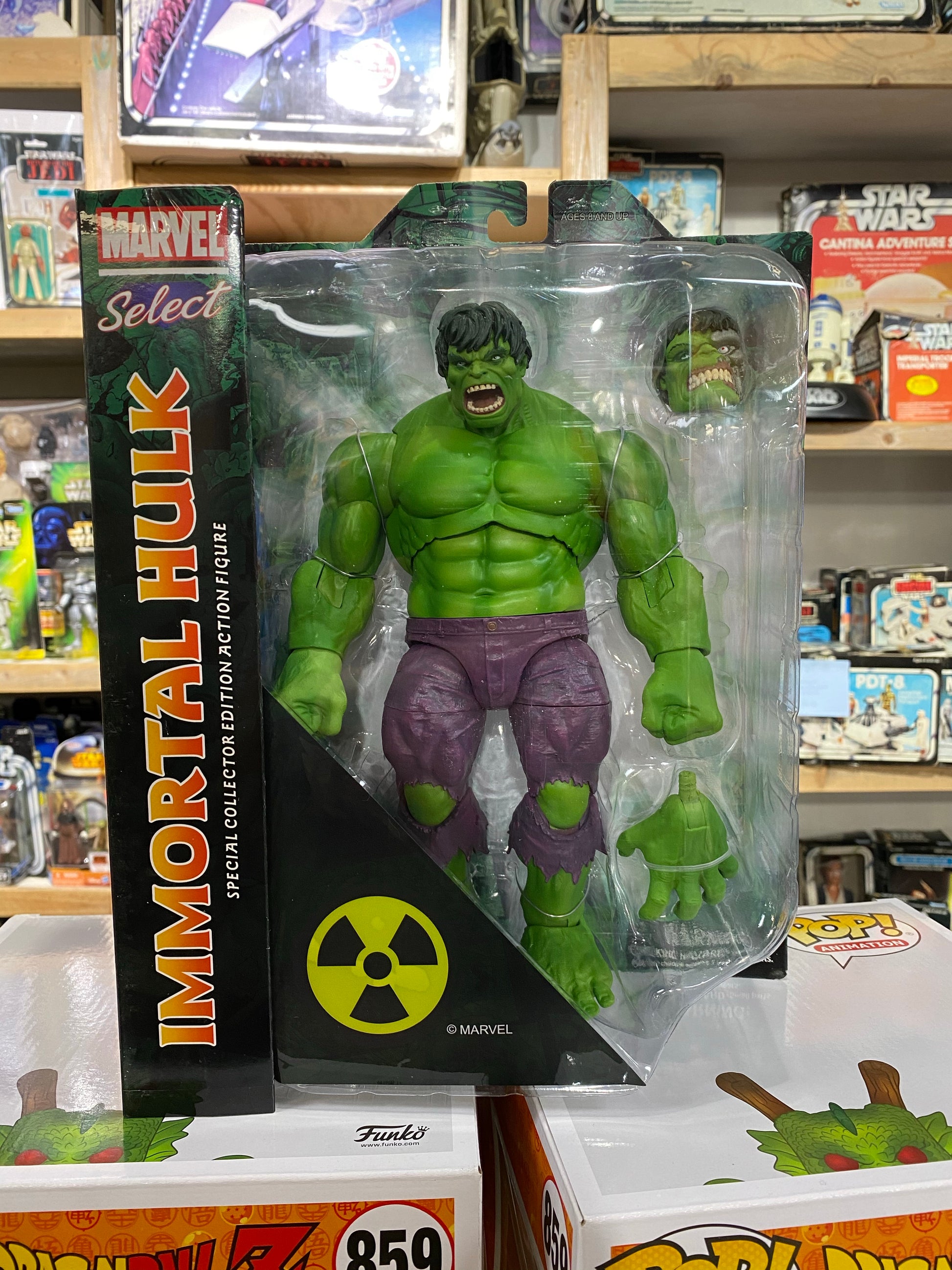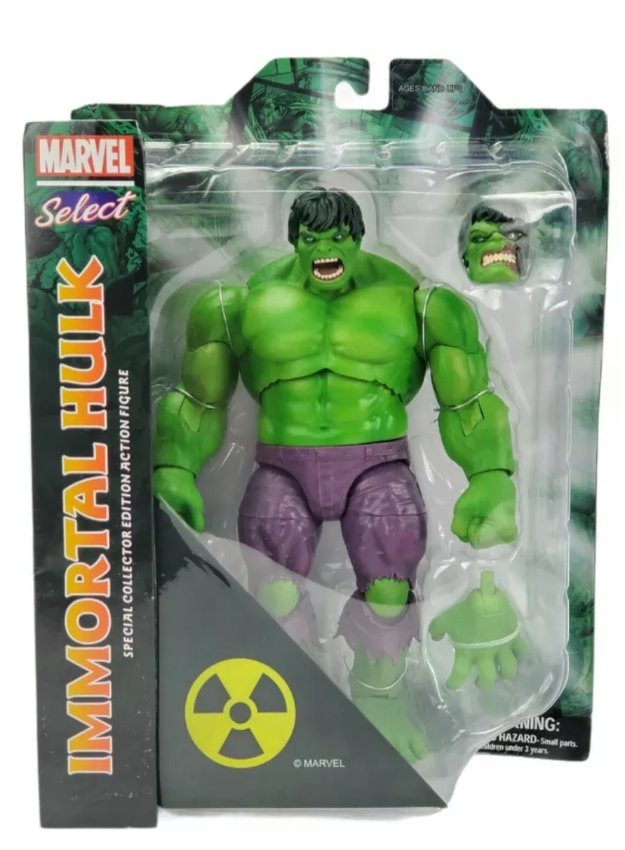 It's the Hulk of a lifetime! Fans have asked for a classic-style Hulk action figure for years, and it has finally arrived! Measuring approximately 9.75 inches tall with 16 points of articulation, this iconic character will become a centerpiece in any Marvel figure collection. Includes one set of alternate fists and an alternate Cosmic Hulk head. It comes packaged in display-ready Select figure packaging with side-panel artwork for shelf display. Designed by Yuri Tming, sculpted by Gentle Giant Studios.