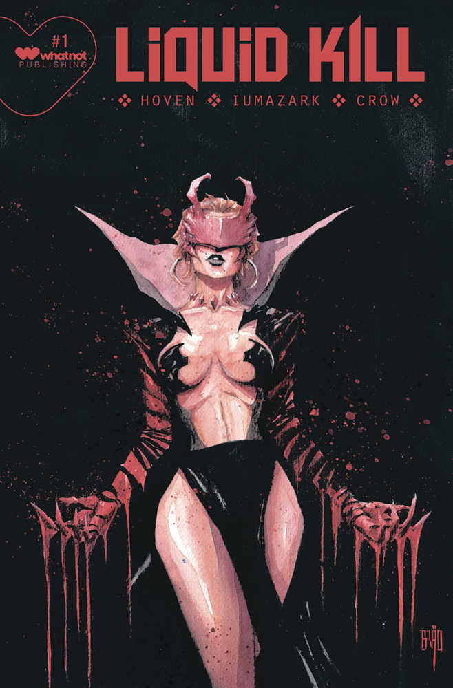 Brazilian pinup artist BRAO (Behemoth/Sumerian) joins the Whatnot Publishing team with this dynamic pose. LIQUID KILL follows sadist-slaughtering vigilantes as they encounter pure evil in a blood-soaked cyberpunk future ( la GHOST IN THE SHELL meets JOHN WICK) written by the creators of the critically-acclaimed series IT EATS WHAT FEEDS IT and artist Gabriel Iumazark (Boom! Studios). For the staff and clientele of a mysterious island hotel, it's just another night of luxury and vice until members of Liquid Kill (a notoriously violent, all-female militia), lay siege. Demanding compliance or death as they gather intelligence, the adrenaline quickly floods the halls as the team eliminates all threats with ease in their search for their kidnapped leader. That is until something is unleashed... something hungry. If there's anyone prepared for the evils on the island, it's these fearless killers, but when the undaunted begin to falter, their foe must be truly monstrous.