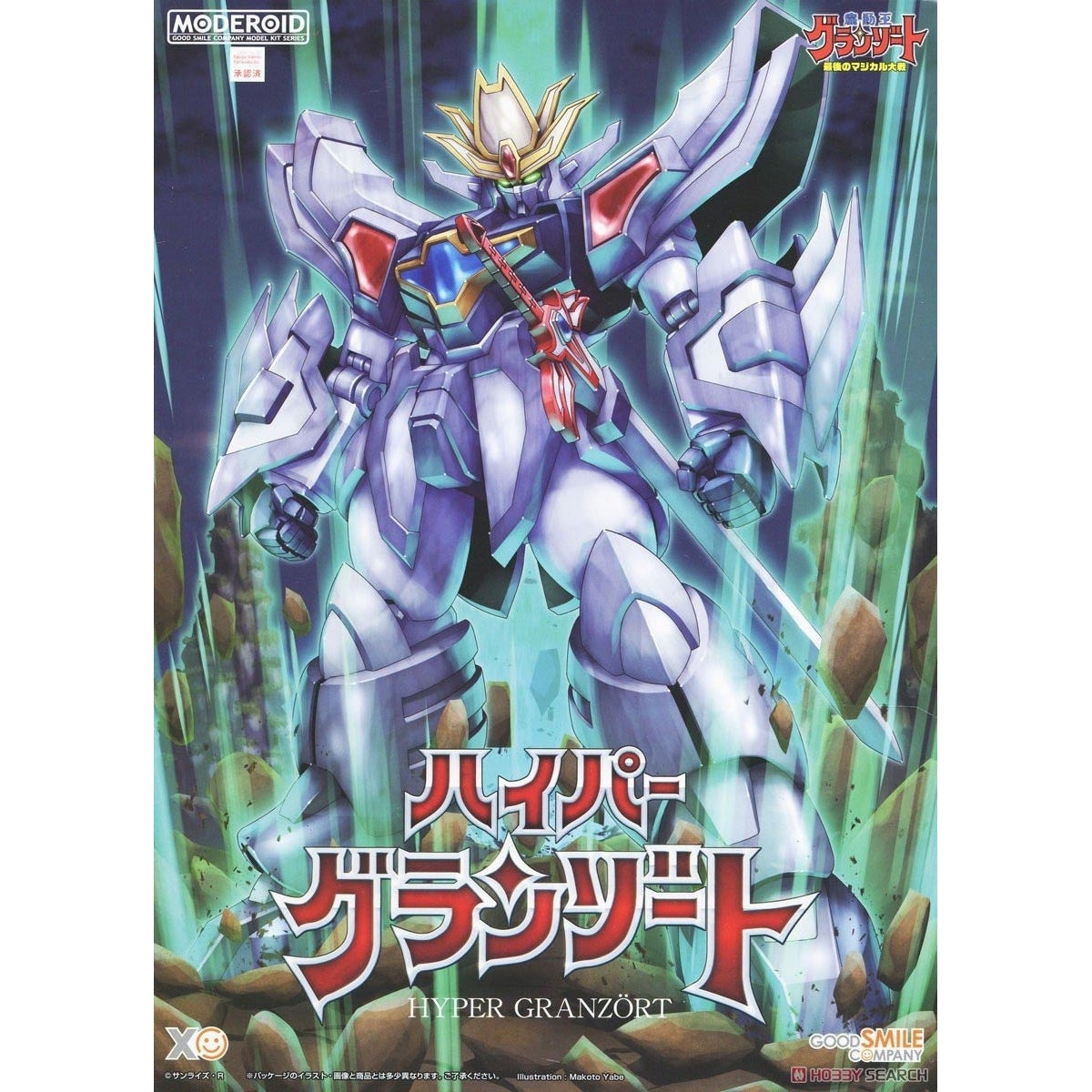 From Good Smile Company. From "Mado King Granzort: The Last Magical War" comes MODEROID Hyper Granzort, the first-ever plastic model of Hyper Granzort! Standing at about 190mm (7.48 inches) in height, this model features several points of articulation. As the largest in the MODEROID Granzort series, Hyper Granzort includes three types of Hyper Eldikaiser blades: a standard version, a gold version, and a magic flame effect version. An originally designed backpack part is also included. By combining with MODEROID Super Granzort, MODEROID Super Winzert, and MODEROID Super Aquabeat (all sold separately), you can create a form based on the Solar God. The various parts of the mecha are separated into different colored runners, pre-painted parts, and stickers, making it easy to recreate with simple assembly.