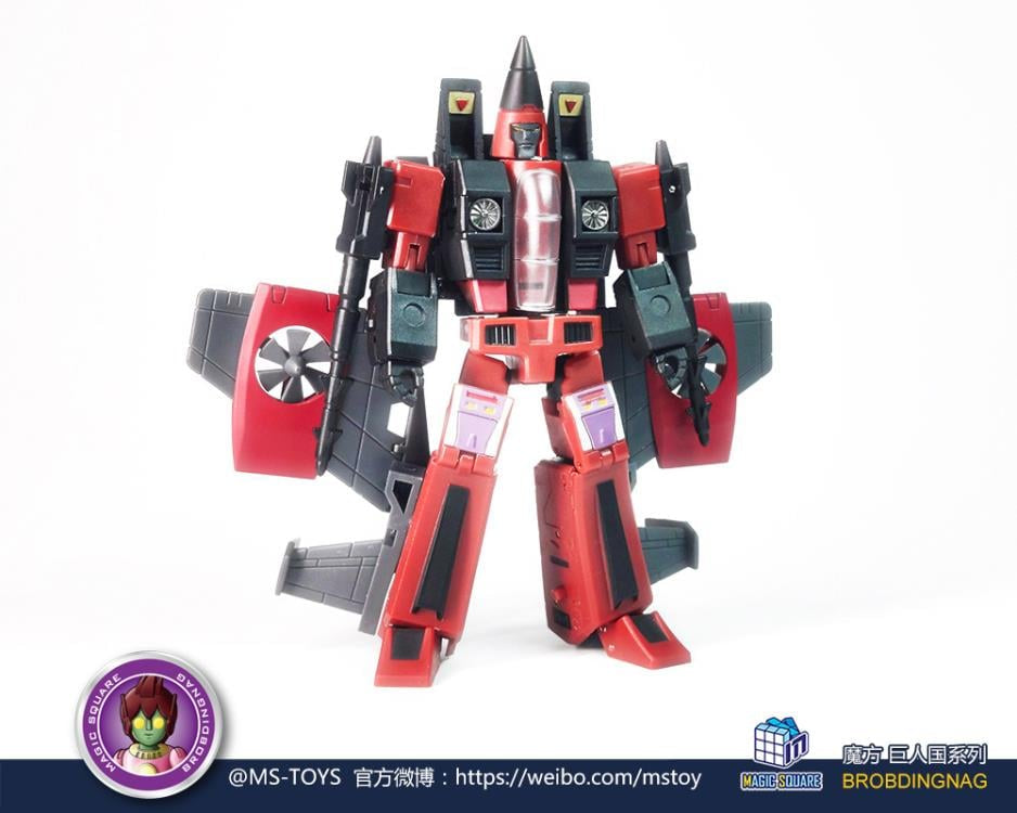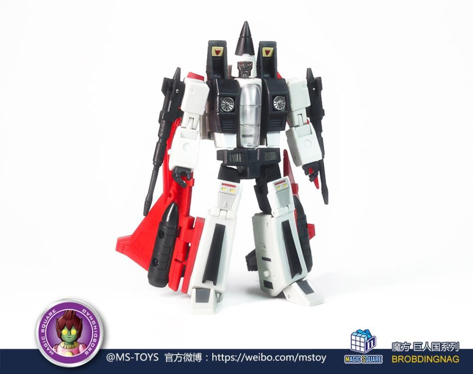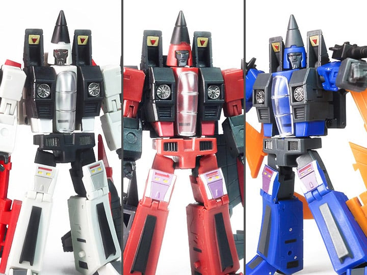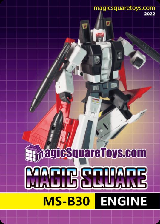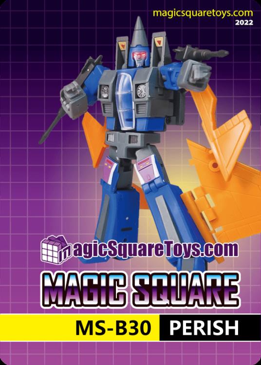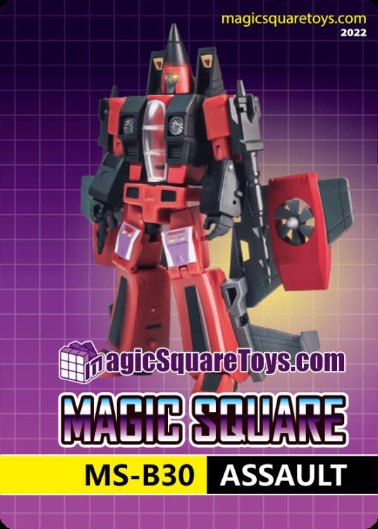 The MS-B30 Jet Fighter Team by Magic Sqaure includes three figures: Assault, Engine, and Perish. Each robot converts into a jet.