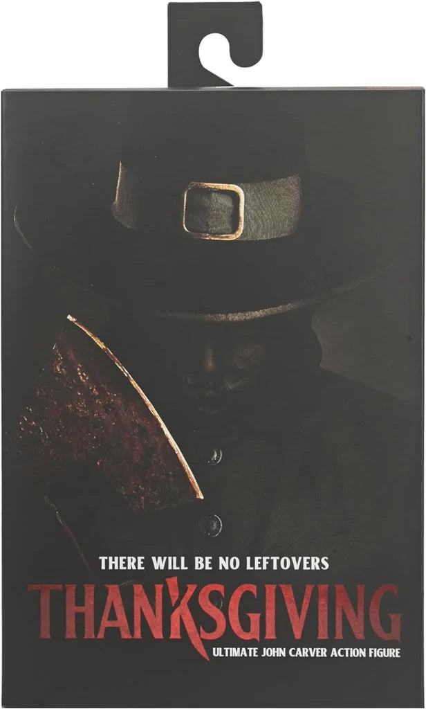 From NECA. This year... There will be no leftovers. A masked killer terrorizes Plymouth, Massachusetts in this Eli Roth-directed horror flick that originated from a trailer in the film Grindhouse. This Ultimate John Carver action figure is highly articulated and comes with all the trimmings: musket, sledgehammer, axe, dart gun, meat tenderizer, knives, removable hat, extra hands, and three interchangeable masks. The 7" scale figure comes in collector-friendly window box packaging with opening flap.