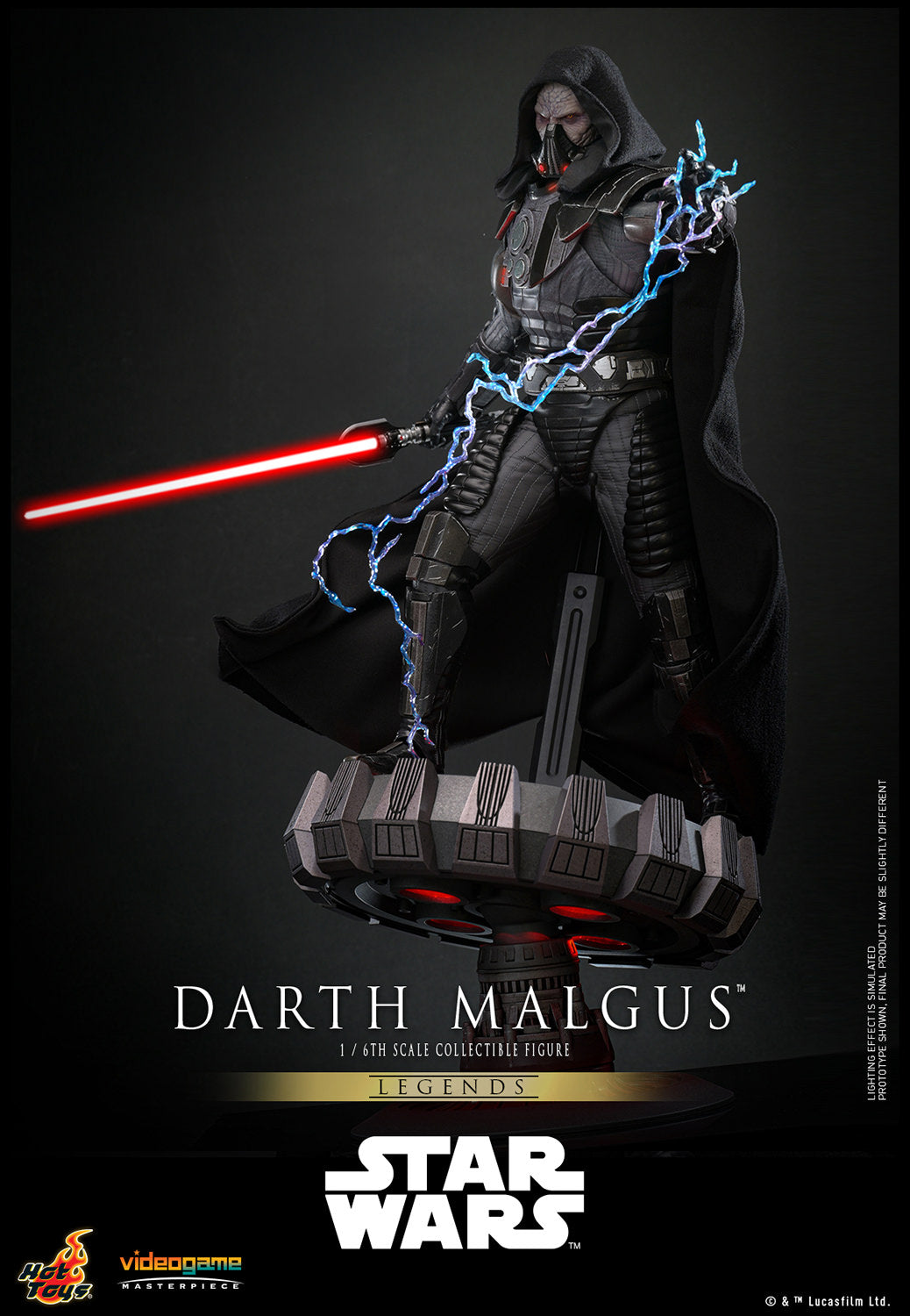 Masterfully crafted to capture exquisite likeness of Darth Malgus from the game, the figure features a meticulously crafted head sculpt with separate rolling eyeballs, along with a newly sculpted detachable LED-lighted mask. Darth Malgus’ armor is also finely tailored, from special LED light-up gauntlets to a chest plate with light-up control panel, highlighted by a specialized body. Light-up Lightsaber and an adjustable themed lighted circular figure base are also included allowing fans to create dynamic poses for the Darth Malgus figure.