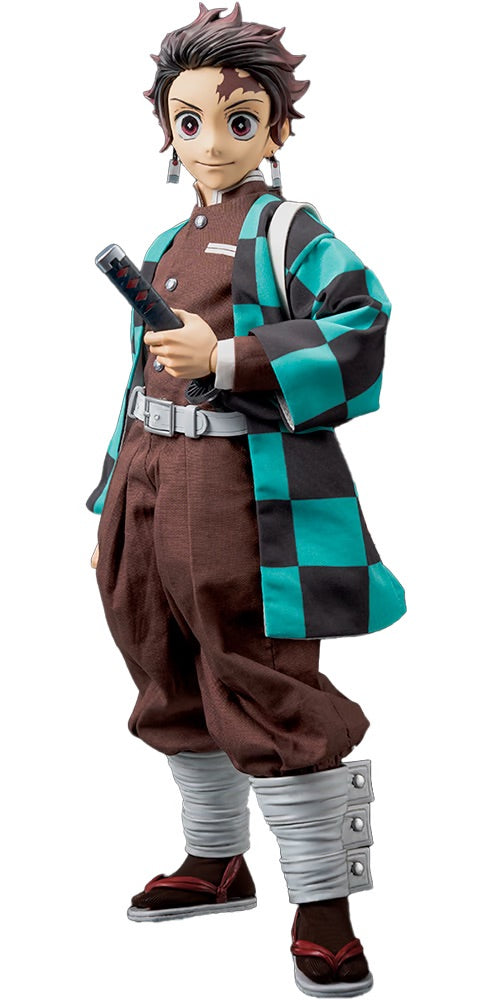 The figure's attire includes the fabric-made Demon Slayer Corps uniform, and Tanjiro’s iconic haori with an interior metal wire for poseability