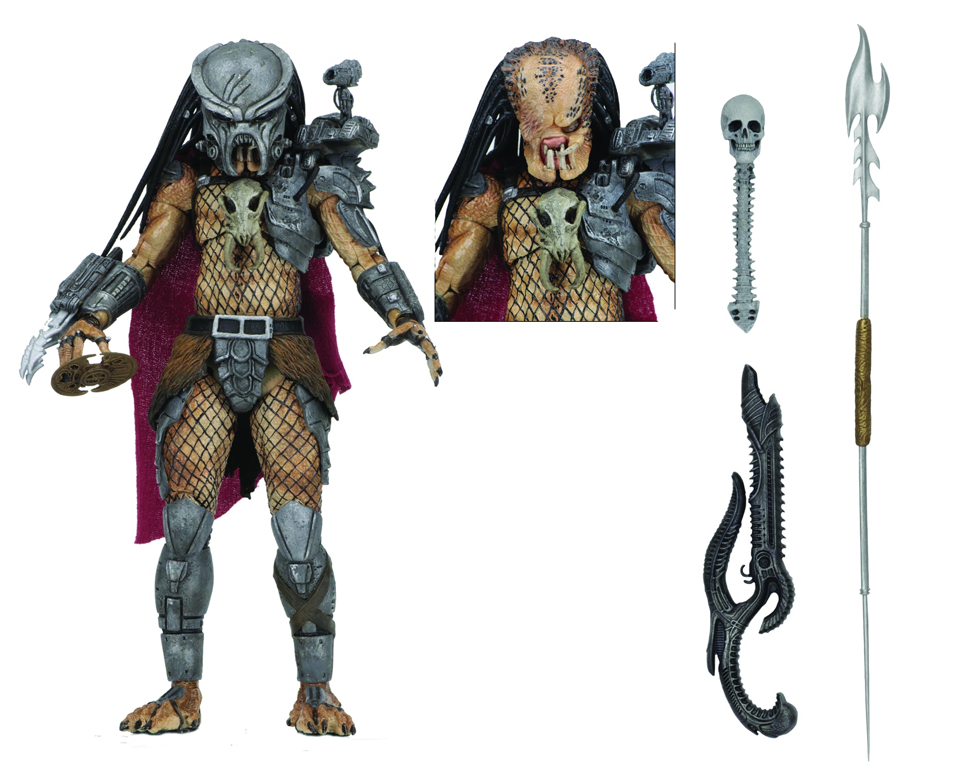 This brand-new version of Ahab is based on his appearance in the Dark Horse comics. NECA has given the SDCC 2014 exclusive a massive upgrade, equipping it with the all new Ultimate Predator body which has added articulation in the biceps, elbows and torso, plus an opening gauntlet. The figure also features a new skirt, new right gauntlet, new knee armor, cape and all new deco. He's equipped with brand new accessories, including an Engineer Gun, Spear, Gauntlet with both 2- and 3-blade configurations, alternate hands, and more! The Engineer Gun can be held or clipped to the figure's back. Stands approximately 8" tall and comes in collector-friendly deluxe window box packaging with opening flap.
