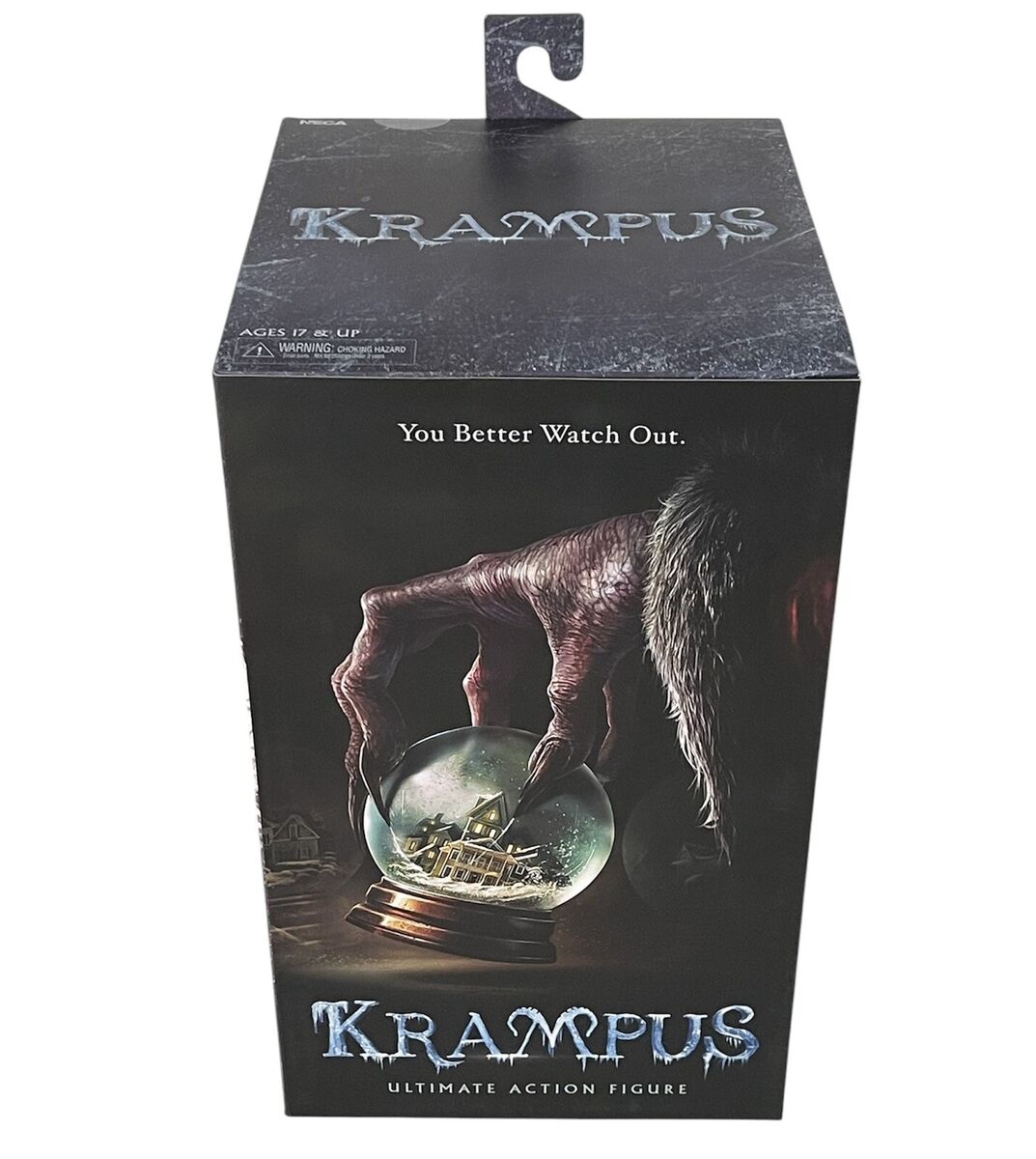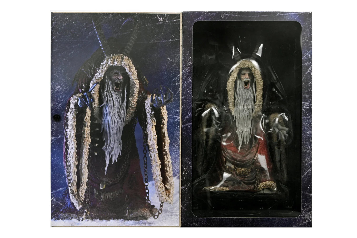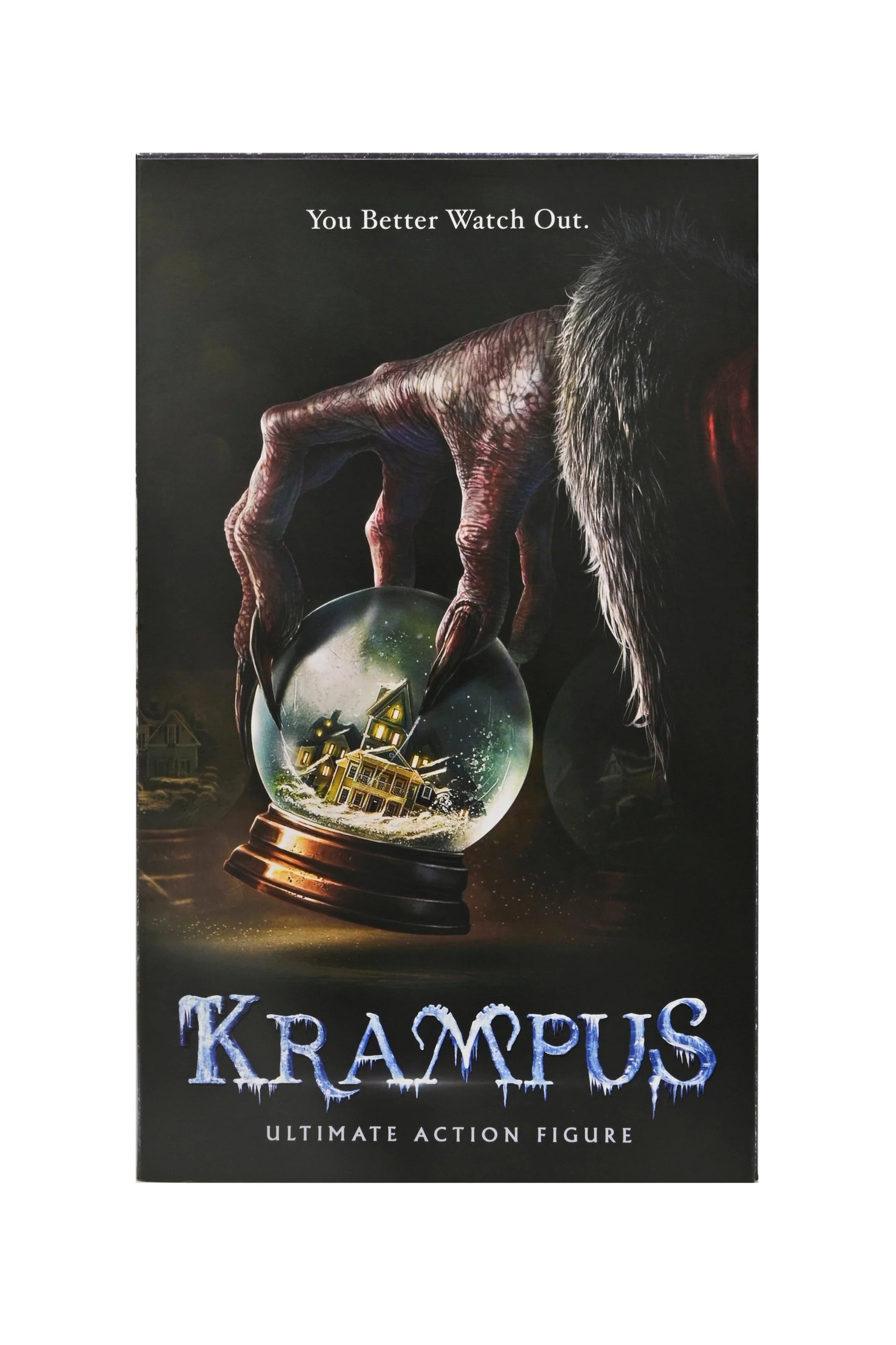 From NECA. When the Christmas spirit is lost, he arrives. NECA is spreading some holiday fear with this deluxe figure of Krampus, the ancient demonic beast and titular monster from the 2015 spooky Christmas film by Michael Dougherty. Looming over 10" tall, this incredibly detailed figure is the ultimate Krampus collectible, perfect for your annual holiday horror display and packed with accessories. Krampus comes draped in real chains with padlocks hanging throughout, all meticulously crafted to replicate the character's on-screen appearance. Other accessories include seven interchangeable hands, over 10 trinket accessories you can hang on his chains, Krampus bell in box, Krampus bell in wrapping, and that iconic snow globe with the Engel's family house inside. Comes in collector-friendly deluxe window box packaging.
