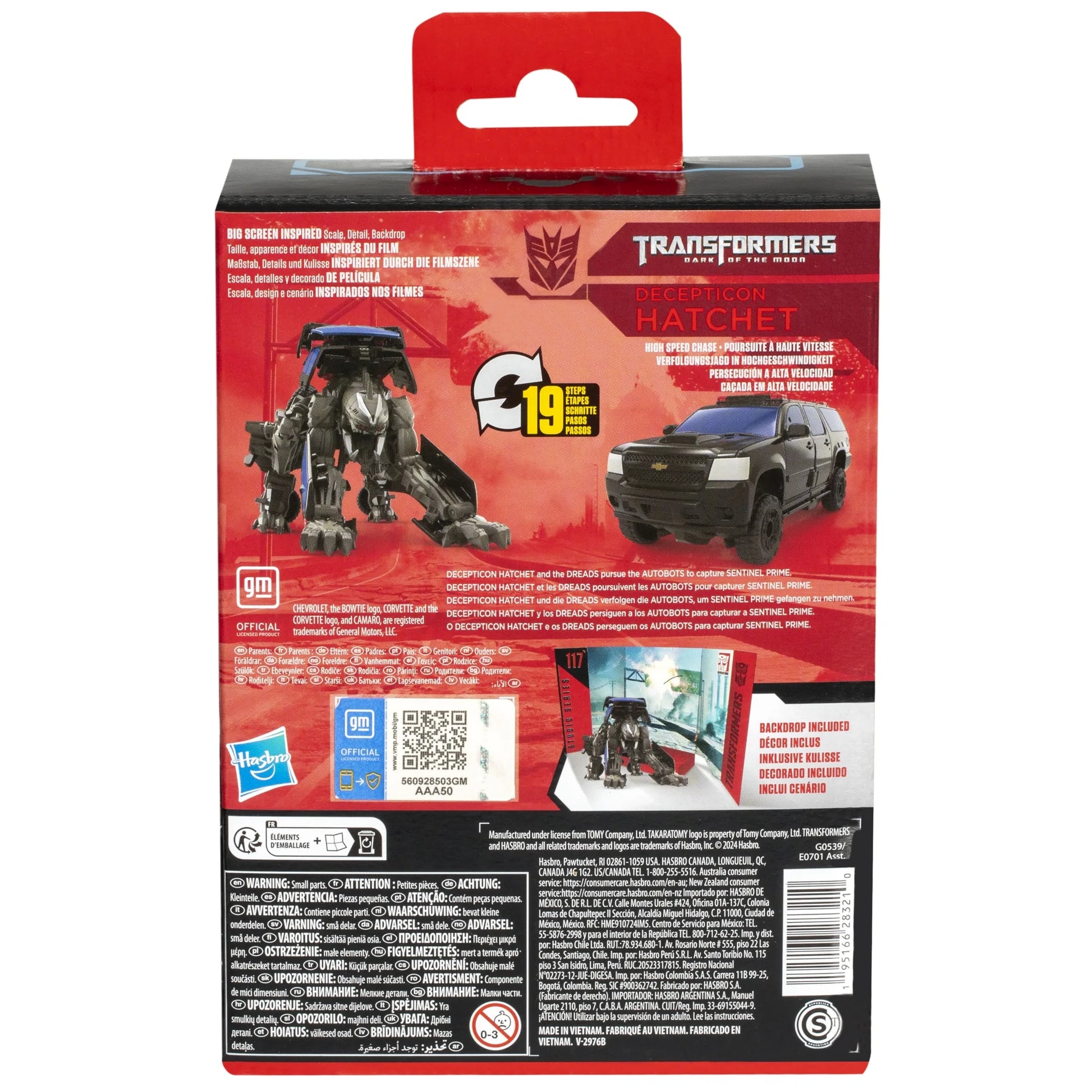 From Hasbro Toy Group. Bring the epic action of the Transformers movies from the big screen into your collection with the Transformers Studio Series Deluxe Class Decepticon Hatchet action figure, inspired by Transformers: Dark of the Moon! Transformers Studio Series toys are collectible action figures that feature movie-inspired details and accessories. Convert the Studio Series Transformers action figure from robot to Chevrolet Suburban vehicle mode in 19 steps and pose the Decepticon Hatchet toy in the included High Speed Chase removable backdrop scene. Look for more Transformers Studio Series collectible figures to build a movie-inspired collection (each sold separately, subject to availability)!