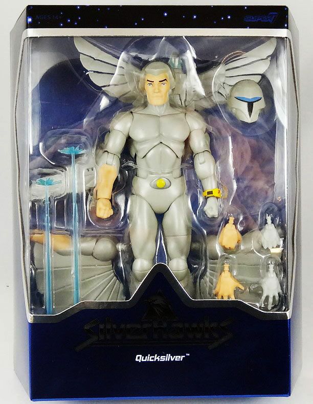 The SilverHawks animated series returns as part of the Ultimates 7-inch scale figure line from Super7! Quicksilver comes with 2 versions of his Weapon Bird Tally-Hawk, along with his weapons, wings, and other figure accessories, all packaged in a collector-friendly windowbox.