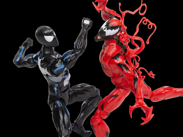 From Hasbro Toy Group. When an alien symbiote latched onto Spider-Man, it almost made him lose sight of his morals. And this symbiote created a spawn, transforming Cletus Kasady into the ruthless villain Carnage. These collectible 6-inch-scale Marvel Legends figures are detailed to look like the Spider-Man Symbiote & Carnage characters from the 1994 Spider-Man: The Animated Series cartoon, featuring premium detail, multiple points of articulation, and 7 series-inspired accessories.