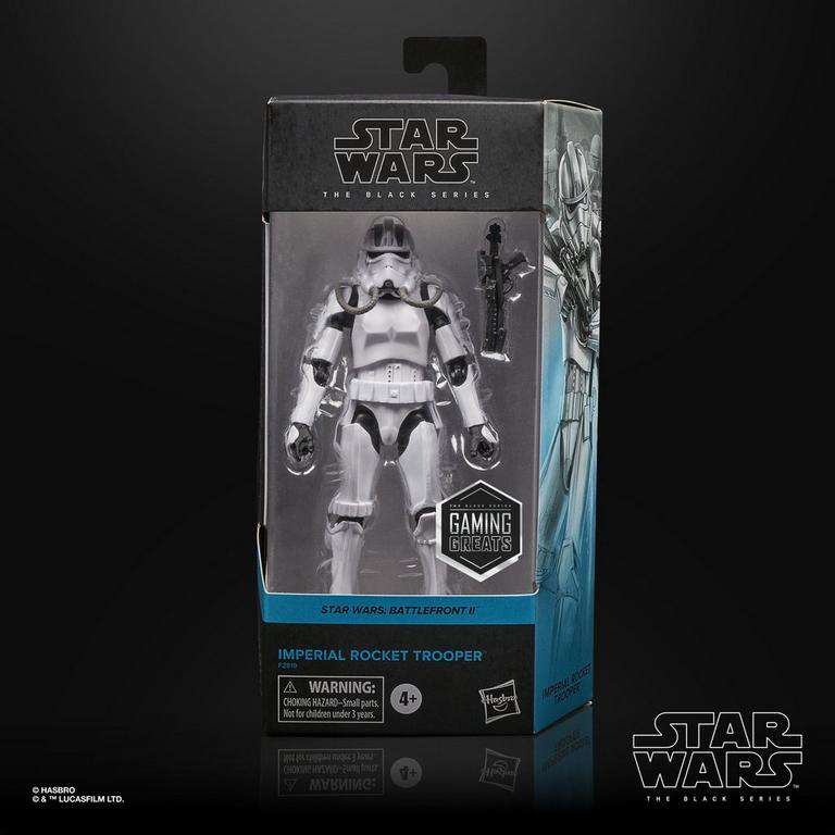 The 6-inch-scale Gaming Greats Imperial Rocket Trooper figure is detailed to look like the character from the Star Wars: Battlefront II video game, featuring premium detail and multiple points of articulation.