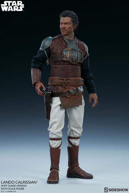 From Star Wars: Episode VI Return of the Jedi, Sideshow presents the Lando Calrissian Skiff Guard 1/6 scale figure ready to protect your galaxy of Star Wars collectibles. The figure includes both an unhelmeted portrait with the detailed likeness of actor Billy Dee Williams and an alternate portrait with a non-removable helmet and mask as a part of his full guard uniform.