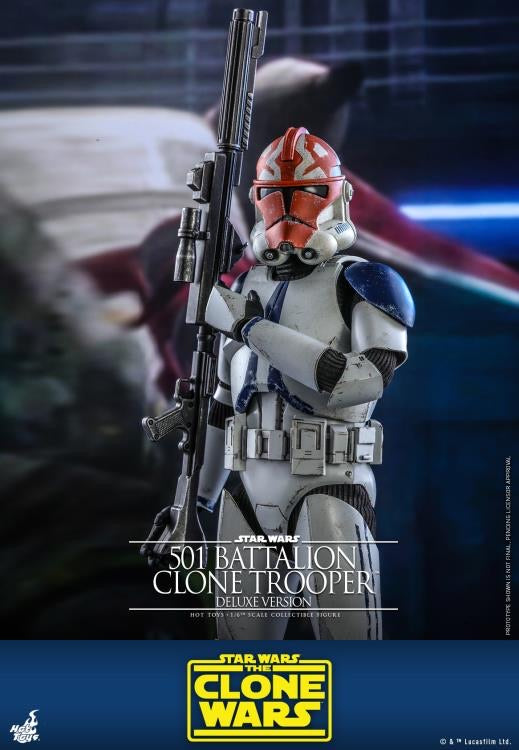 Continuing to expand the Star Wars: The Clone Wars collectible series, Hot Toys presents a Deluxe Version of the Clone Trooper from the 501st Battalion based on this critically acclaimed animated series!
