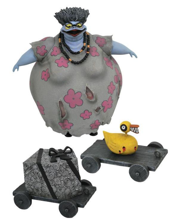This is Halloween! Some of Halloween Town's creepiest citizens come out of the woodwork for this series of Nightmare Before Christmas Select action figures! Mr. Hyde with Corpse Dad, Corpse Mom with Duck Gift, and Mrs. Claus with Choir Elf each feature multiple points of articulation and include various scary and/or festive accessories. They each come packaged in Select action figure packaging, with side panel artwork for shelf reference. Designed by Eamon O'Donoghue, sculpted by Cortes Studios.