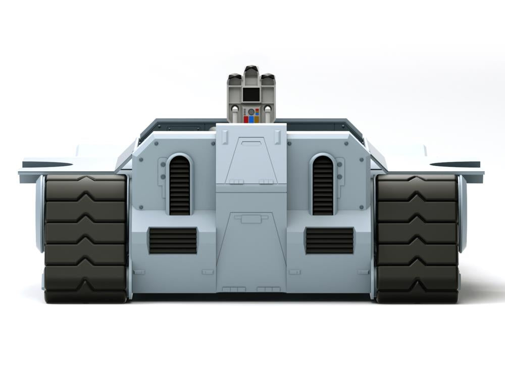 The Thundertank measures 27 inches long and 17 inches wide. Your 7 inch scale Ultimates figures will feel right at home in this tank. The rear tank panel opens to fit 4 figures and the included gun station, while the front panel opens to fit a driver and a passenger.