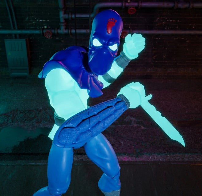From Super7. The Foot Soldiers are a glowing example of how the Clan puts its best foot forward! This Super7 exclusive 7" scale Teenage Mutant Ninja Turtles ULTIMATES! Foot Soldier figure features a glow-in-the-dark body and comes with interchangeable hands and glow-in-the-dark weapons.