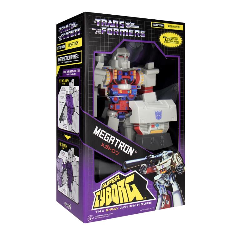 The 12-inch Super Cyborg Megatron features limited articulation and a clear chest plate to reveal his cybernetic technology!