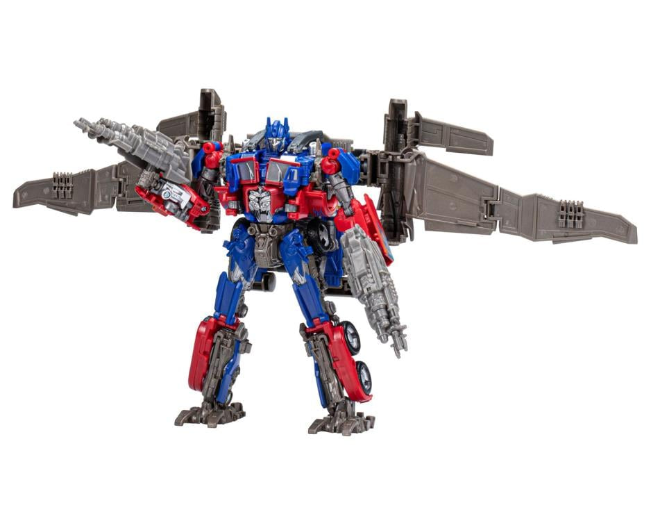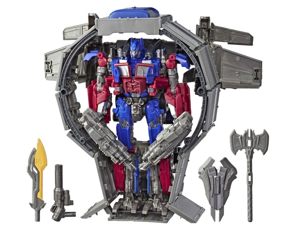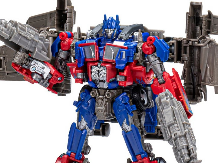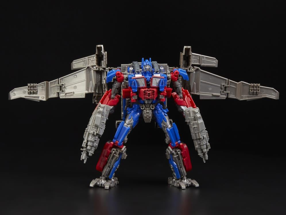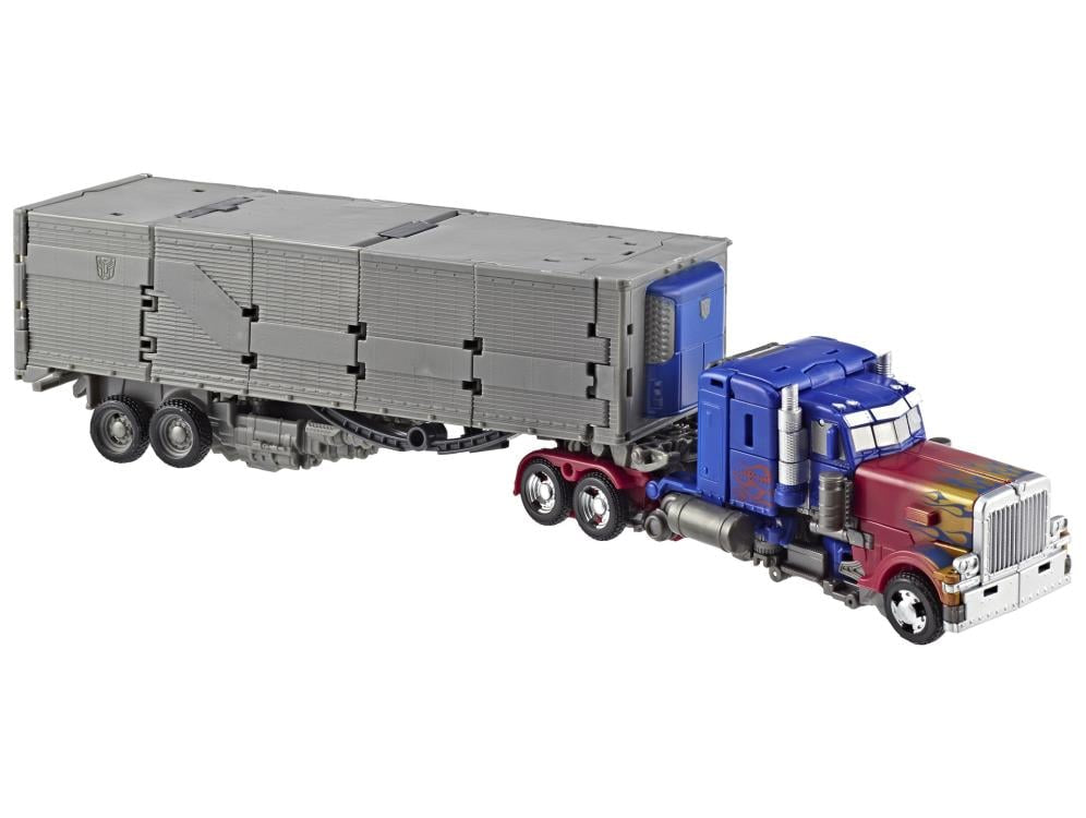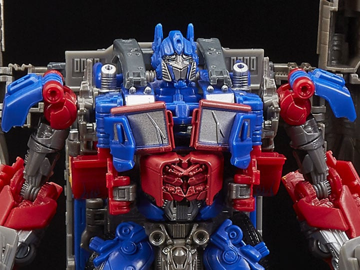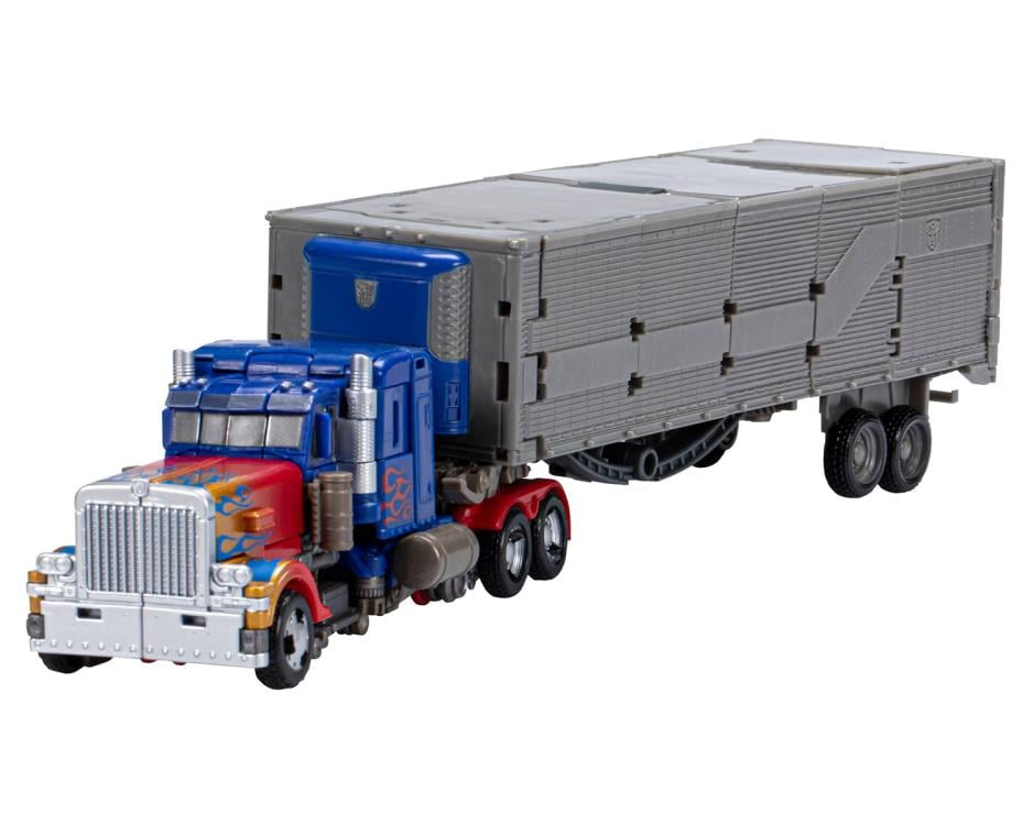 This Studio Series 44 Leader Class Optimus Prime figure features vivid, movie-inspired deco and converts from robot to truck mode in 44 steps. Truck trailer converts into jetwing tech to form Jetwing Optimus Prime. Remove backdrop to showcase Optimus Prime in the Battle of Chicago scene. Includes 5 detailed accessories: 2 blasters, 2 Energon weapons, and shield.