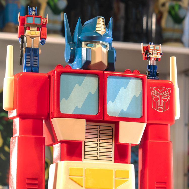 Inspired by the 1970s Shogun Warriors toy line, Super7's Super Shogun Optimus Prime figure stands 27 inches tall and has a spring-loaded firing fist. Optimus Prime features G1 era accurate paint job and detailing, 3 points of articulation, and a removable Ion Blaster. In addition, Optimus Prime can also open his chest to reveal the Matrix of Leadership.