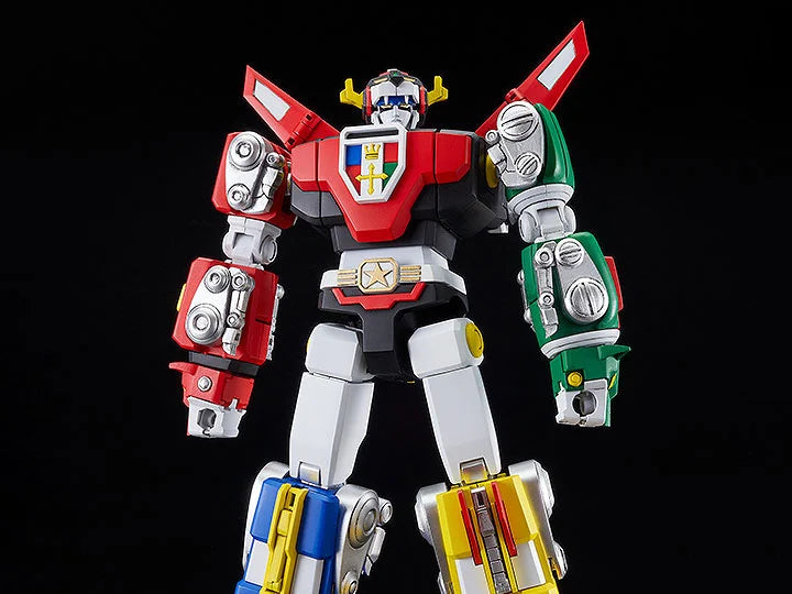 From the animated series "Voltron" comes a MODEROID plastic model of Voltron! The model stands at about 8 inches in height and features several points of articulation. The five mecha combine into Voltron without the use of extra parts. Two types of head parts are included for Blue Lion and Yellow Lion for use in individual and combined form, with either head part being usable for combination.