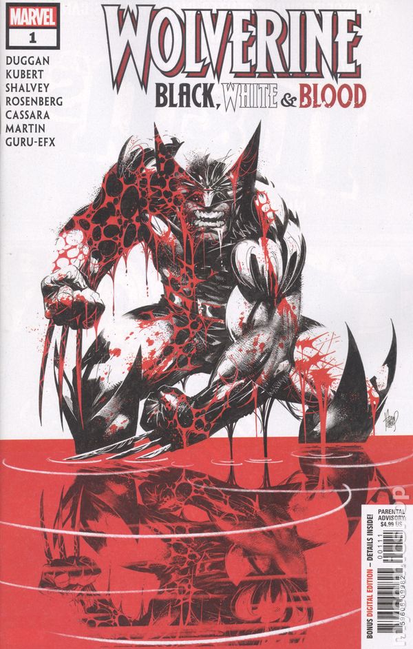 Written by Gerry Duggan, Matthew Rosenberg and Declan Shalvey. Art by Adam Kubert, Joshua Cassara and Declan Shalvey. TOP MARVEL TALENT SINK THEIR CLAWS INTO ALL-NEW WOLVERINE TALES AND THEY'RE BLOODIER THAN EVER! LOGAN. PATCH. WEAPON X. WOLVERINE. The mysterious mutant has gone by many names and lived many different lives. Now, experience ALL-NEW untold tales of the best there is through the lens of an all-star cast of creators, in the unadulterated black and white format (with a healthy splash of blood red all over)! Return to the Weapon X program with Gerry Duggan and Adam Kubert, and a new revelation from Wolverine's shattered memories, in "The Beast Within Them"! Join Matthew Rosenberg and Joshua Cassara on an explosive deep-cover spy mission from Wolverine's association with NICK FURY in "I Shall be a Wolf"! Head into the wilds with writer/artist Declan Shalvey as Logan finds himself in the crossfire of a deadly trap in "Cabin Fever"! This is the one you've been waiting for, bub. 36 pages, PC/PB&W. Parental Advisory. Cover price $4.99.