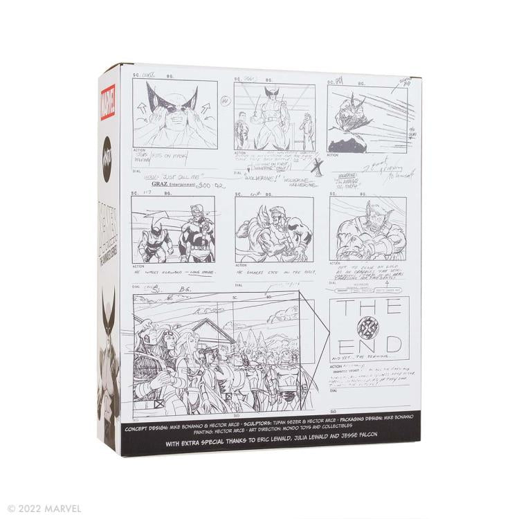 Recreate the most iconic moments from X Men: The Animated Series with this 1/6 scale fully articulated Wolverine action figure From Mondo! With graphic detailing that evokes the animation style, the 11.5" tall Wolverine includes: four swappable expressions; retracted and extended claws; seven interchangable hands; lightning claw energy effect; a glossy photo of Cyclops and Jean Grey, which can be swapped out with a photo of your choosing; and, of course, a turkey leg. This PREVIEWS Exclusive Wolverine figure comes packaged in a unique closed box featuring real storyboard artwork from the animated series, and is limited to 2500 pieces worldwide!