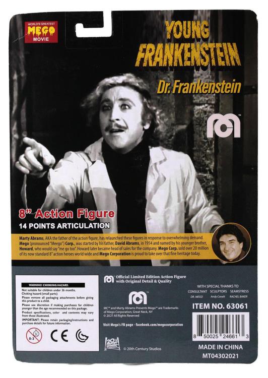 Mego Corporation has created all your favorite characters as 8-inch action figures. This high quality Dr. Frankenstein figure features real fabric clothing and 14 points of articulation.